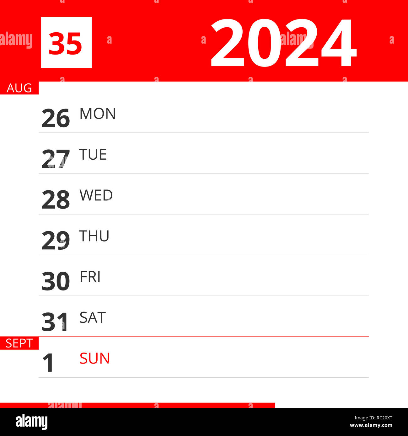 Calendar Planner Week 35 2024 Ends Stock Illustration 1288555735